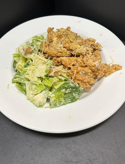 Three hand-battered, crispy chicken tenders cooked to order and served hot. Comes with fries and your choice of sauce — simple, satisfying,…