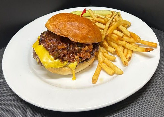 Two smashed beef patties cooked thin and juicy, topped with melted American cheese and our house-made onion, bacon, and jalapeño jam. Rich, messy in the best way, and built to satisfy.